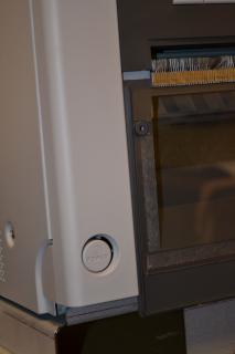 If the cabinet is on, but the printer is off, press the power button on the printer located on the bottom left corner of the printer